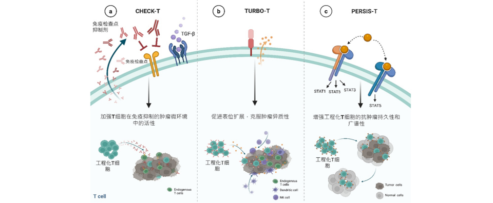 先進細胞裝甲平臺,通過裝備過繼性細胞療法(ACT)使其突破腫瘤微環境(TME)屏障及異質性,提升實體瘤治療的安全性、浸潤性和持久性。
